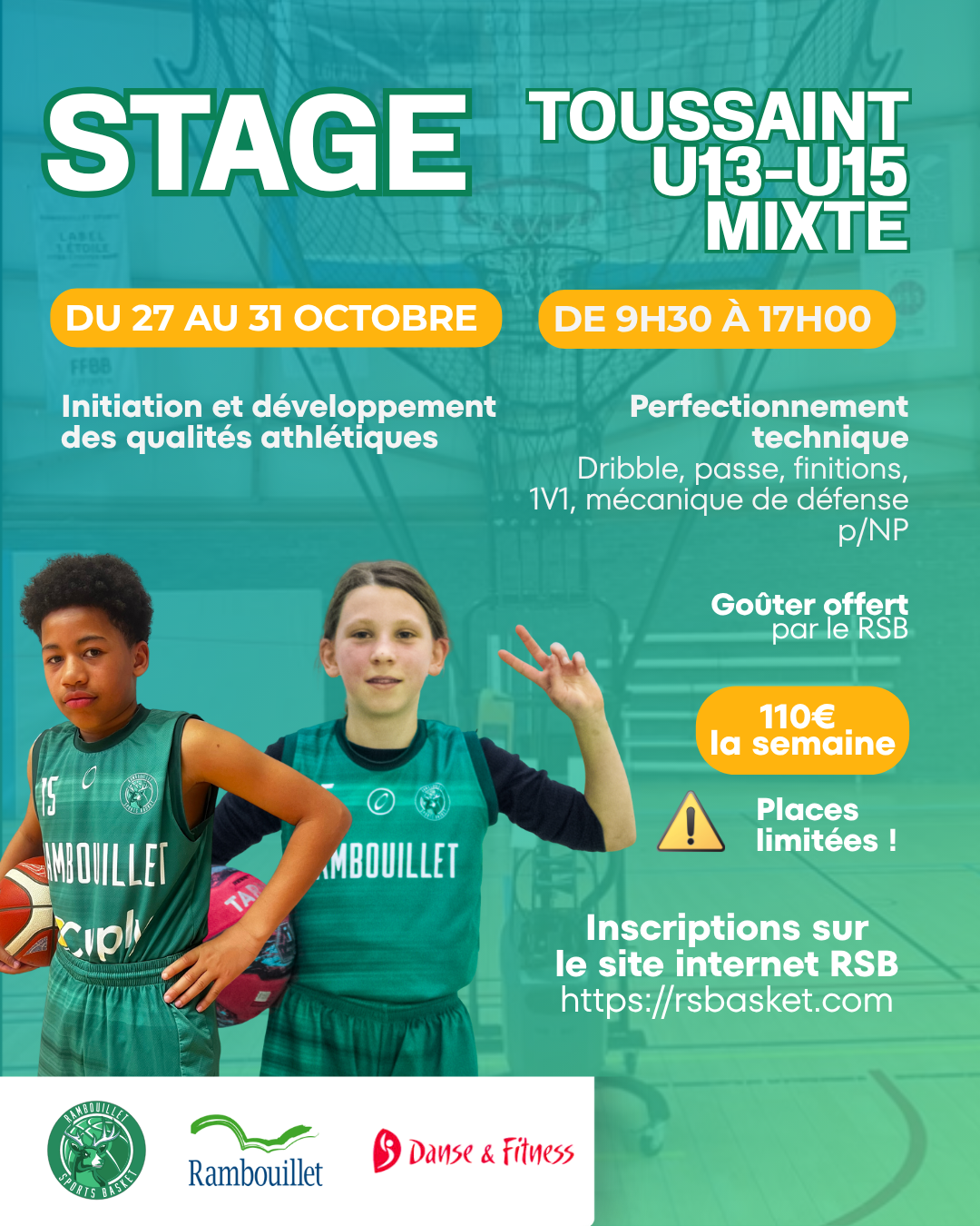 Les stages de basket du Rambouillet Sports Basket (RSB) offrent aux jeunes basketteurs l’opportunité idéale de progresser tout au long de l’année, même pendant les vacances scolaires.